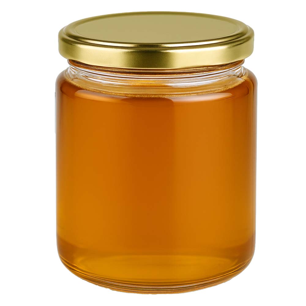 Hochwertiges 350 g Honigglas mit elegantem goldenem BasicSeal UNiTWIST-Deckel. Die perfekte Größe für mittelgroße Honigmengen, Direktvermarktung und Geschenkverpackungen. Der goldene Deckel verleiht dem Glas eine edle und authentische Optik.