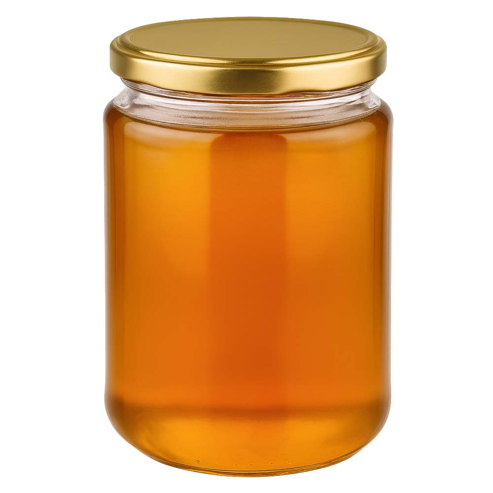 Hochwertiges 450 g Honigglas mit elegantem goldenem Deckel BasicSeal UNiTWIST. Das robuste Glas eignet sich perfekt für große Honigportionen, Direktvermarktung und Geschenksets. Der goldene Deckel verleiht dem Produkt ein edles Erscheinungsbild.
