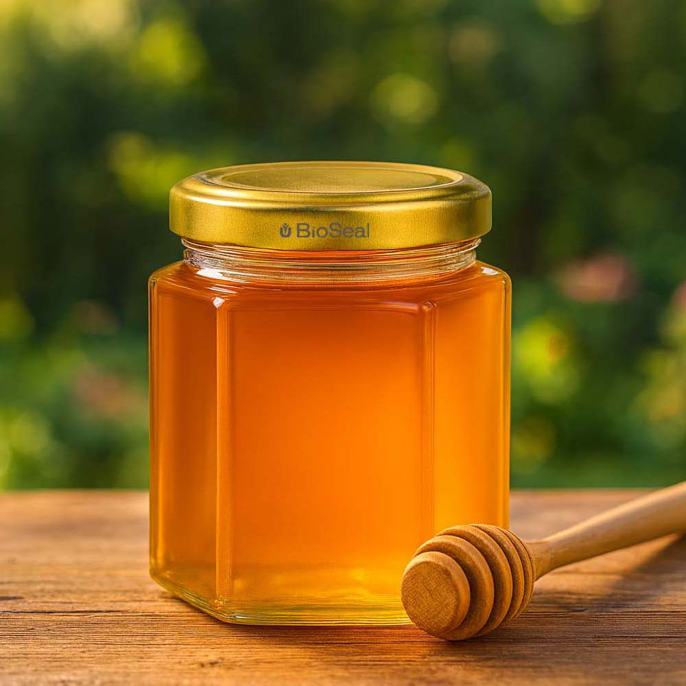60g Honigglas mit goldenem Deckel BioSeal UNiTWIST
