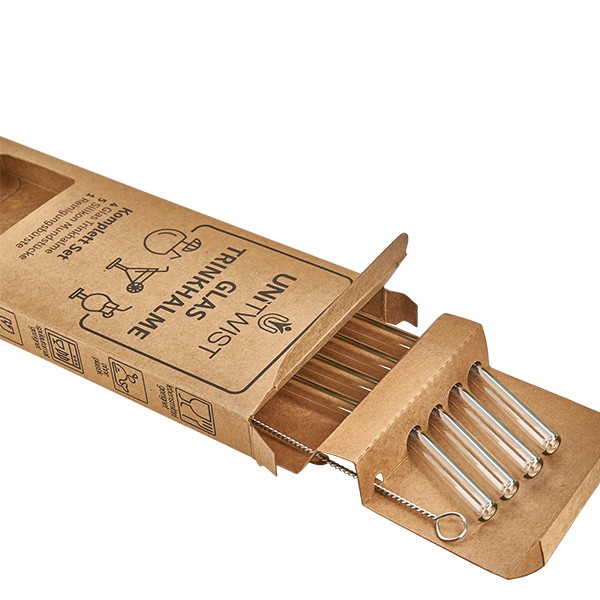 - 4 palhinhas de vidro transparente e curvo com uma fina gravação UNiTWIST