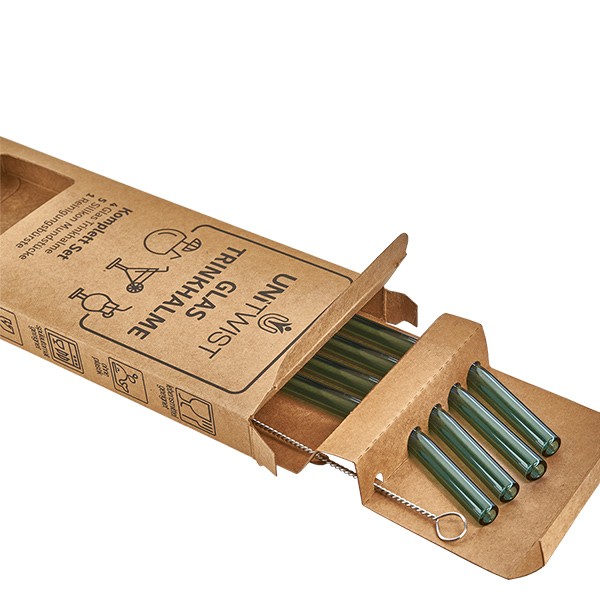 Conjunto de palhinhas de vidro verde com pontas macias UNiTWIST