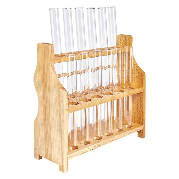 Estante de madeira para tubos de ensaio com 12 tubos de ensaio mais cal sodada 160x16