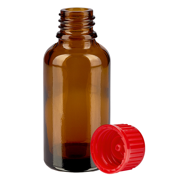 Frasco de 30 ml com tampa de rosca de 11 mm vermelha Standard BrownLine UT18/30