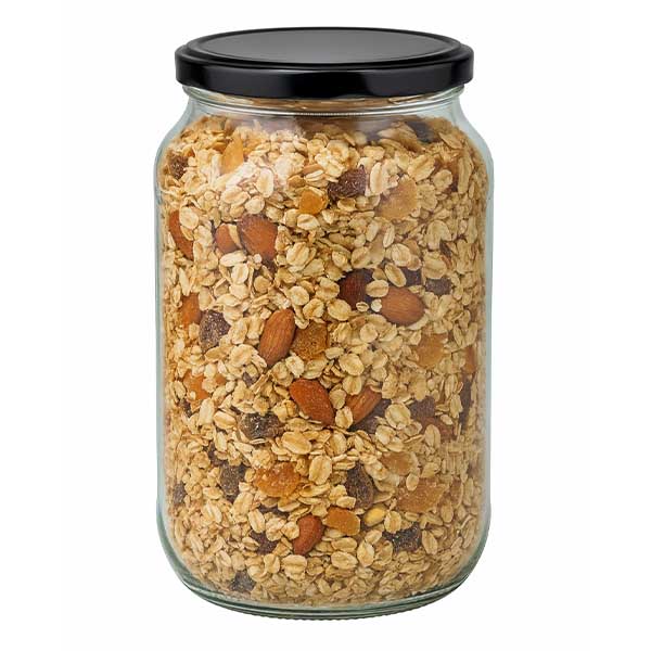 Frasco redondo de 1062 ml com tampa BasicSeal preta UNiTWIST