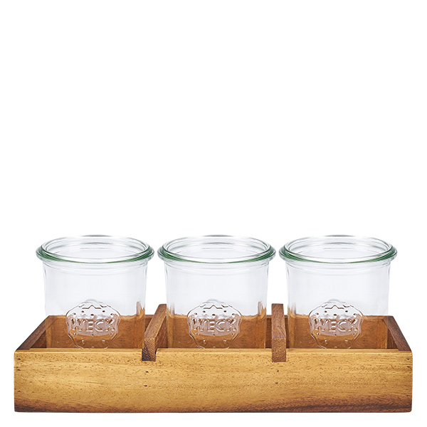 Tábua de servir Box3 madeira de acácia para 3 copos WECK.