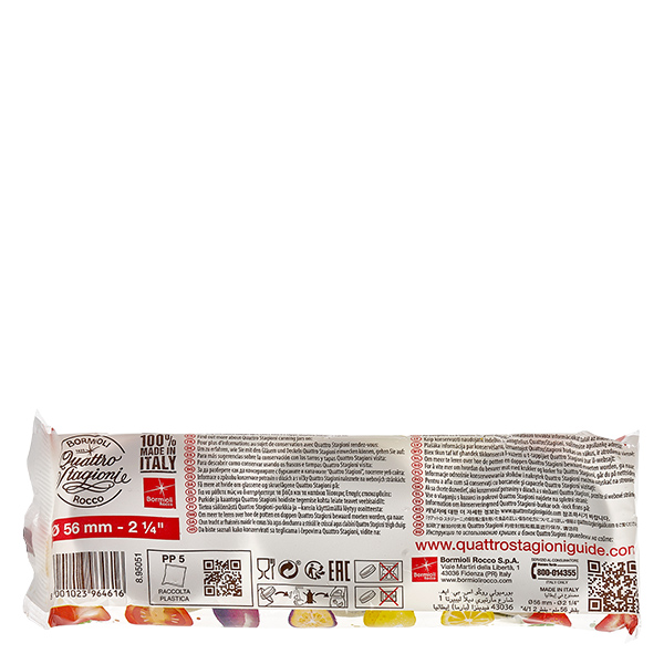 - Resistência ao calor e ao frio: A tampa metálica é resistente ao calor até cerca de 100° Celsius. Todas as tampas Quattro Stagioni podem ser congeladas até -40° Celsius.
