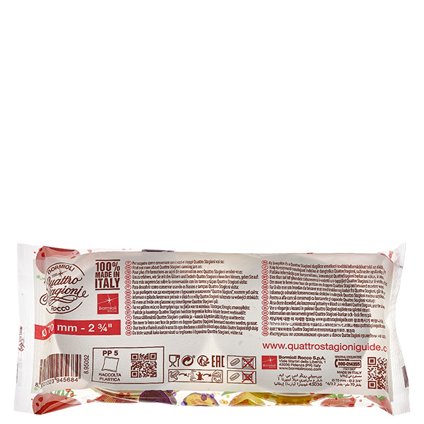 - Resistência ao calor e ao frio: A tampa metálica é resistente ao calor até cerca de 100° Celsius. Todas as tampas Quattro Stagioni podem ser congeladas até -40° Celsius.